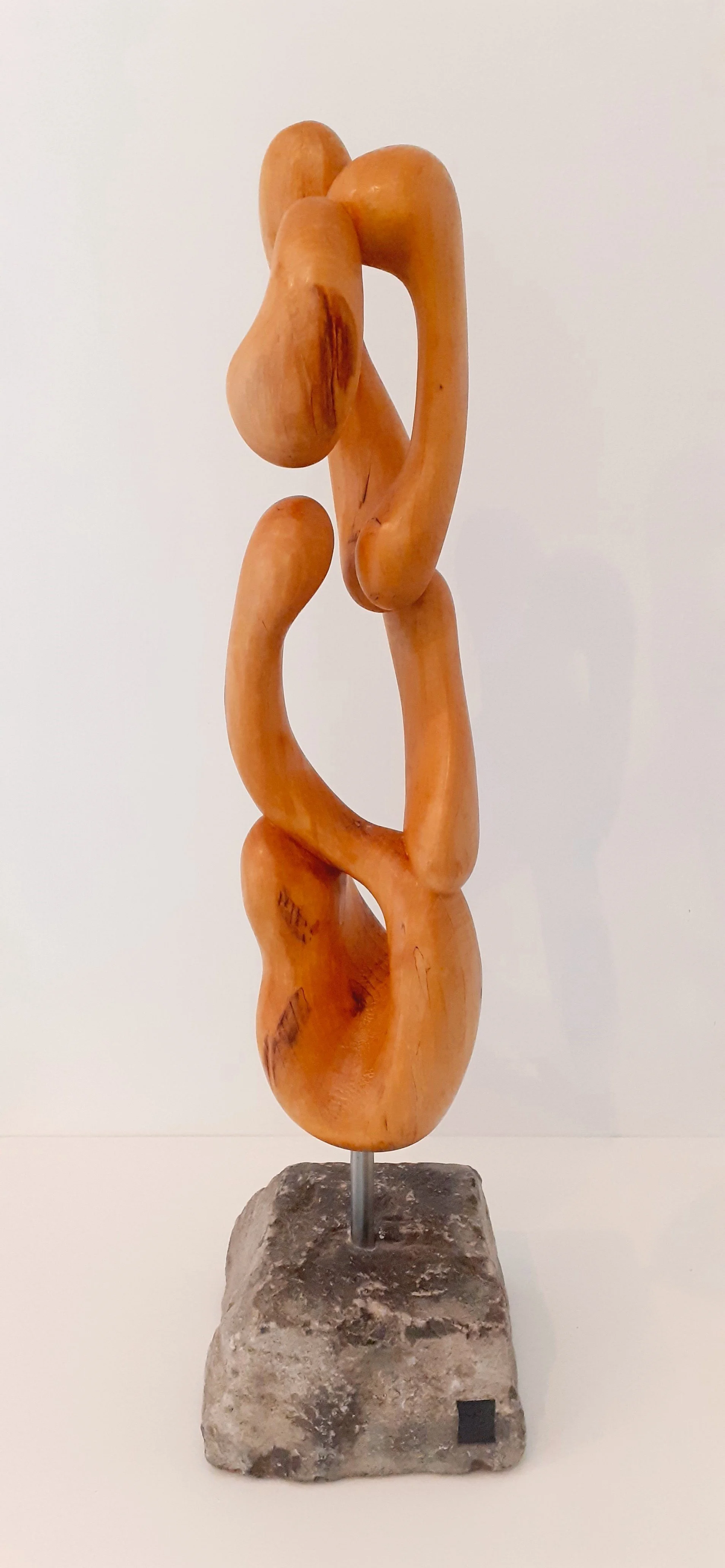Het inzicht en de helderheid ontbreken, maar het werken met hout brengt me terug naar mijn kern en levert dit mooie symbolische beeld op. De zware kassei herinnert me om met mijn 2 voeten op de grond te blijven en niet teveel in mijn hoofd te knopen, want dat zorgt voor verwarring. En zo is de cirkel weer rond...